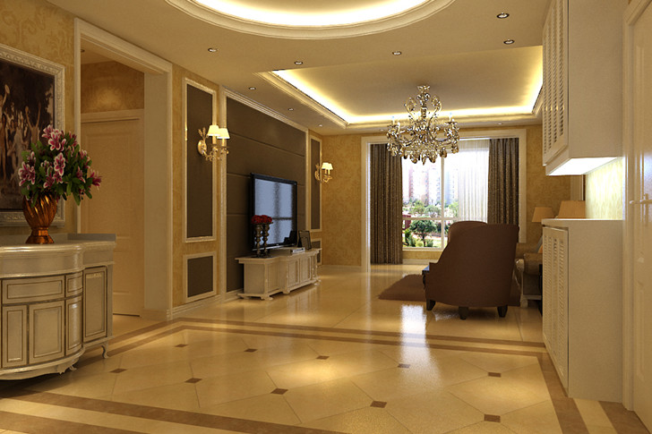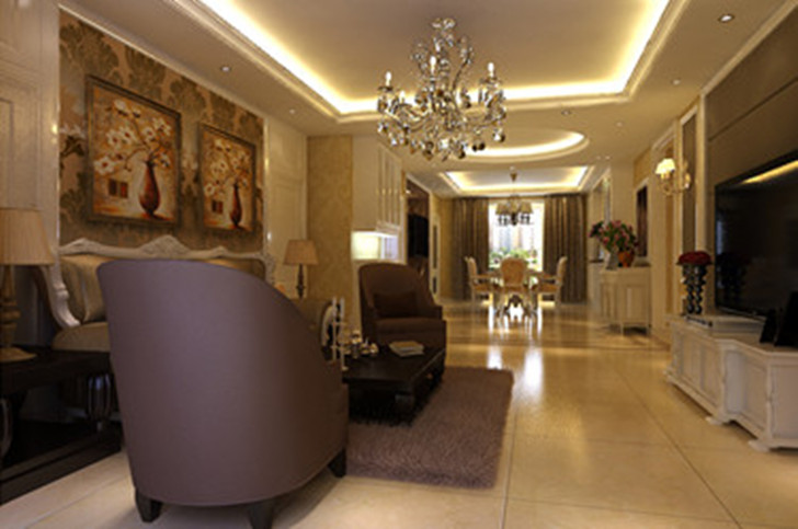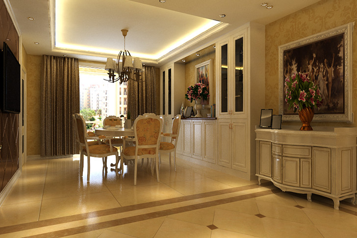 此设计方案的业主是一家三口,夫妇和孩子;风格倾向定位为欧式风格,居室中所出现的电器皆为紧跟时代潮流的产品,如液晶电视、环绕立体音响等。本案的设计重点是会客空间与门厅、餐厅以及过道空间互通与交流,从设计手法上采用了从墙面上的线与面的衔接呼应,以及顶面的空间的虚拟划分,达到各功能空间融会贯通的目的。欧式风格在本案中得到了淋漓尽致的体现。