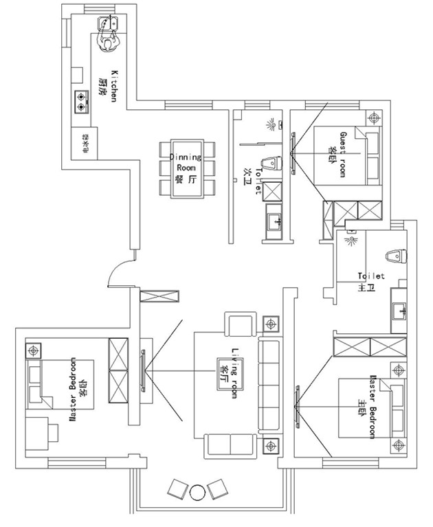 业主是年轻的夫妇,就是喜欢浅色欧式,给人感觉能感觉透亮点,干净点。不喜欢吊顶直线型的,过于普通。所以做出此设计。