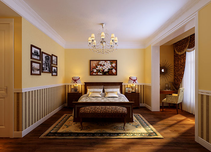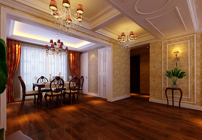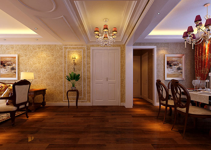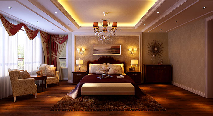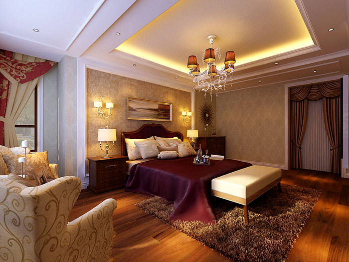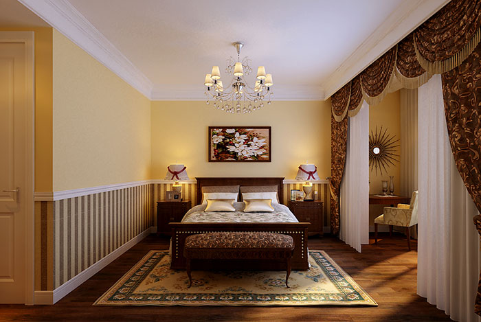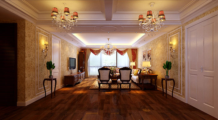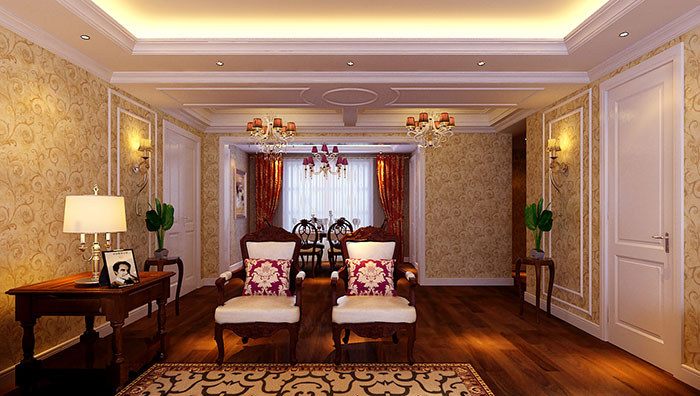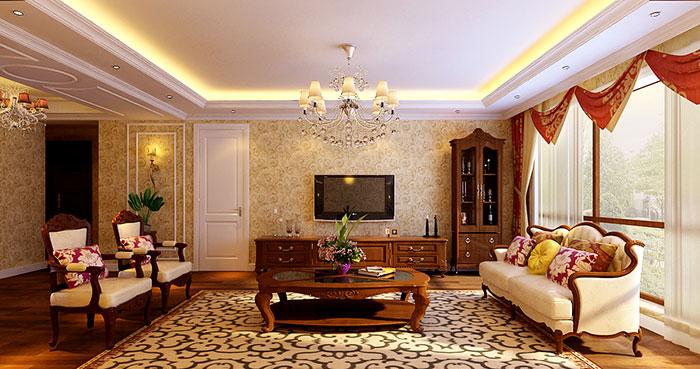 这是一个欧式新古典主义的设计,实际上是一种混搭风格,其最显著的特点是文化和历史的包容性,以及空间设计上的深度享受。它的精华来自于古典主义,但不是仿古,也不是复古。欧式风格追求的是一种神韵。客厅作为待客区域,简洁、明快,在设计上更加明快、光鲜,大面积的地毯,搭配造型优雅、舒适的欧式沙发,在加上客厅两侧的落地窗帘,尽显大气、华贵。在设计上巧妙的运用欧式风格的表现手法,既注重起居品质,又不过分张扬,成就了低调与奢华。