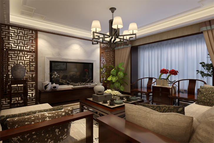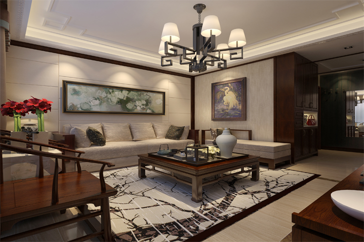 小区:天朗蓝湖树 面积:125㎡ 户型:三居 风格:新中式风格