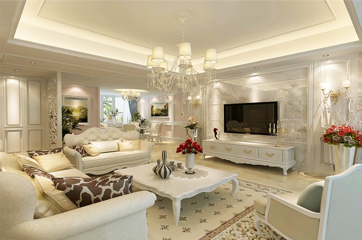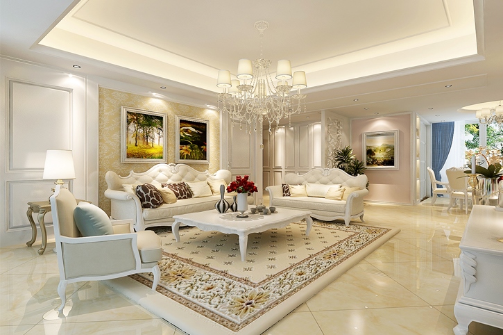 室内多采用带有图案的壁纸、地毯、窗帘、床罩、帐幔及古典装饰画,体现华丽的风格。家具门窗多漆为白色,画框的线条部位装饰为线条或金边,在造型设计上既要突出凹凸感,又要有优美的弧线。