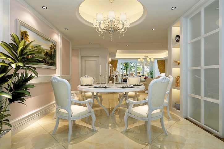 装饰特点上,简欧风格继承了传统欧式风格的装饰特点,吸取了其风格的“形神”特征,在设计上追求空间变化的连续性和形体变化的层次感,用简约的线条代替复杂的花纹,采用更为明快清新的颜色是本案设计的亮点。