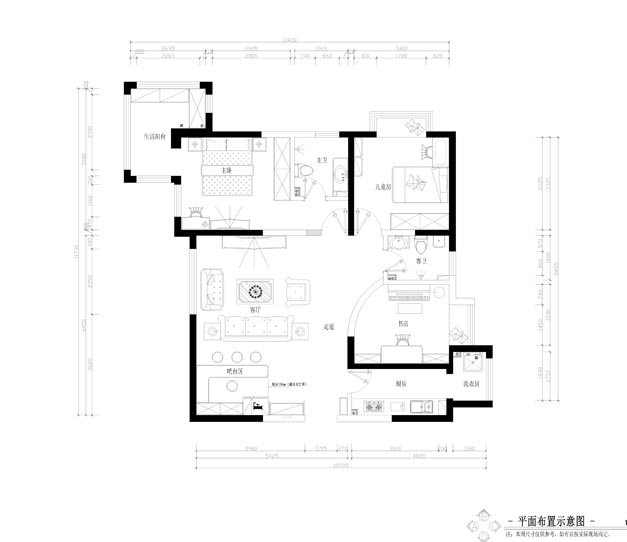 本案设计为现代简约风格。业主为一对年轻夫妇,还没有小孩。为了更适合主人的居住要求,本案在平面布局上做了很大调整,强调空间的自然融合。客厅空间讲究精巧丰富,开敞式书吧让空间更加丰富多彩。主卧功能配置更加完备,观景阳台与主卧连为一体,让主人享有更多浪漫的私人空间。通透宽阔的主卫、超大的衣帽间,提升了居住品质!