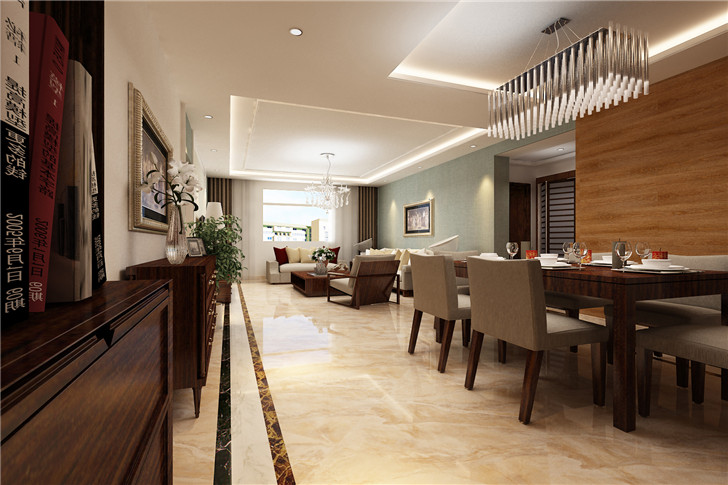 这个家主要空间都朝阳,客厅西晒比较厉害,所以在公共区域采用了大面积的冷色调,这样能让空间在炎炎烈日下稍感清凉,而且通过不同材质、不同色块的对比,让整个空间舒服而又协调,同时又不失时尚。