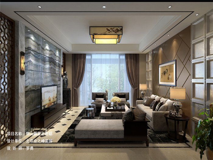 客厅在材料选择上多倾向于较硬、光挺、舒适的材质,体现清雅含蓄、端庄丰华。餐厅在装饰上比较简单,却不单调,灰色格调高雅,造型简朴优美,色彩浓重而成熟。卧室是浅米色为主的自然色彩,反映出现代人追求简单生活的居住要求,更迎合了中式家具追求内敛、质朴的设计风格,使“新中式”更加实用、更富现代感,天然随意。家具则侧重使用线条简单,明朗,在保留了家具的色泽和质感的同时,又注意适应现代生活空间。