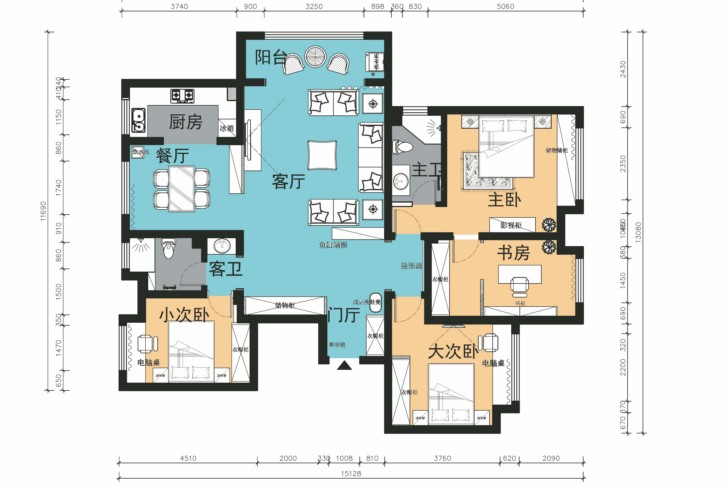 小区:中铁国际城 面积:160㎡ 户型:三居 风格:新中式风格