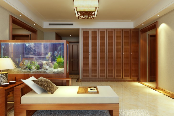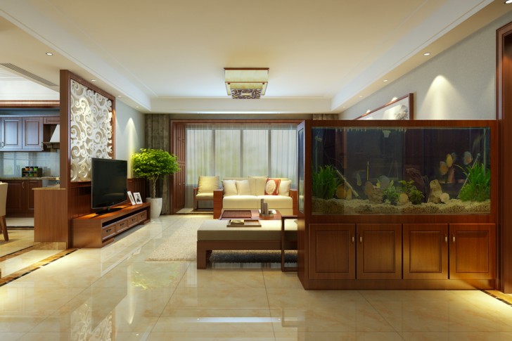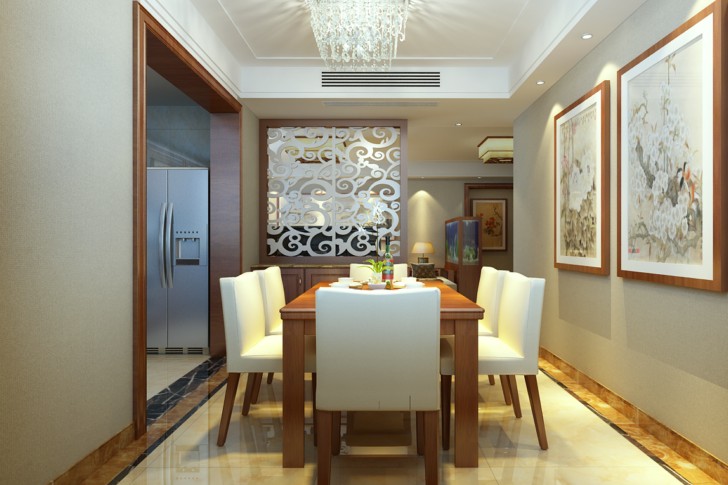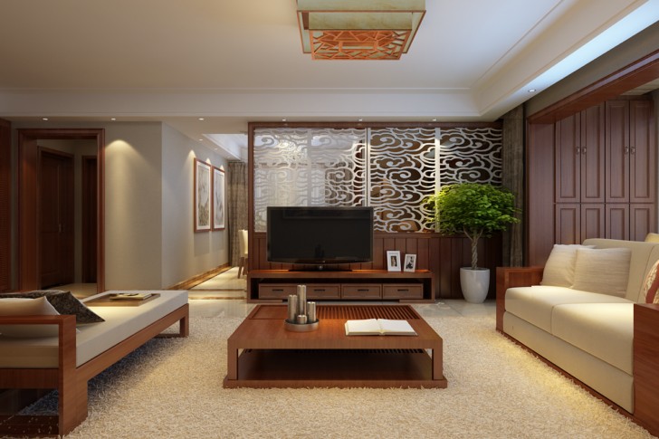 本案例采取简约新中式风格。简约是细节上精致卓越的追求,是舒适愉悦的氛围,从简洁中突出家的和谐。客厅以暖色为主调,浅色沙发布艺配以深色木纹,创造出一种古朴感,躺在这舒服的沙发上,任千年的故事顺指间流淌。雅致的浅褐色墙面勾勒出整个空间的庄重。顶部的设计突出了空间的功能性,墙面线条的流畅演绎出一股汹涌的潮流,而壁画的选择却为房间的设计增加了几分优雅。中式花格、水墨韵味的墙纸、古典回字文的地毯,墙上的小装饰····所有的元素绘成了一个朴素和雅致结合的中式空间。
