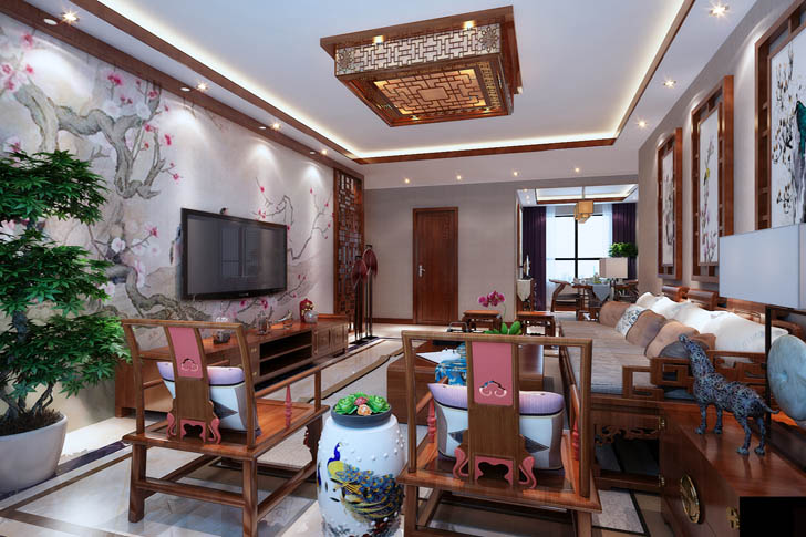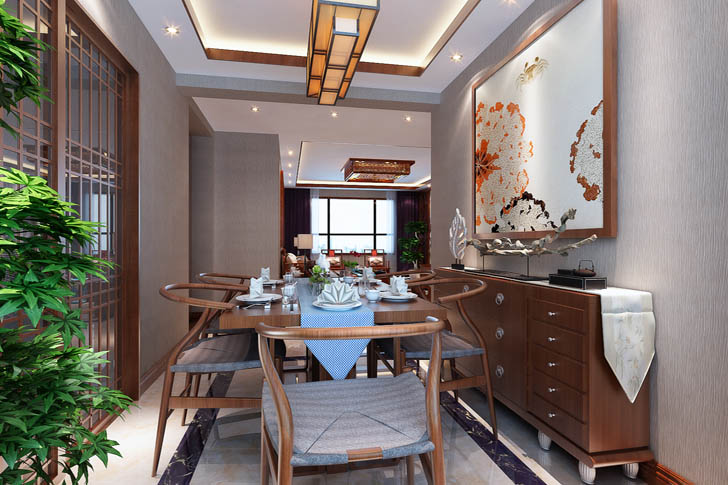 本案运用了新中式设计风格。所谓新中式风格就是作为传统中式家居风格的现代生活理念,通过提取传统家居的精华元素和生活符号进行合理的搭配、布局,在整体的家居设计中既有中式家居的传统韵味又更多的符合了现代人居住的生活特点,让古典与现代完美结合,传统与时尚并存。作为现代风格与中式风格的结合,新中式风格更符合当代年轻人的审美观点,所以新中式风格装修越来越受到80后90后的青睐。