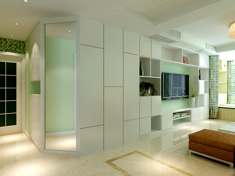 本案定位是现代简约风格,居住者为三口之家,夫妇二人和一个男孩。由于房型是一室一厅的结构。所以为了满足一家人生活需要与舒适,对结构做了适当调整。将门厅处壁橱墙体拆除,在此处打造了一个小型浪漫餐厅。另外,借助客厅较长的特点,在六米长的客厅里,划出2米做榻榻米。此处将作为小男孩的卧室。在白天这里可以做为休闲区,孩子在榻榻米上面玩或者学习,晚上则是睡眠的空间,多功能的设计满足了孩子全方位的需求。同时,这个地方也不乏储物空间