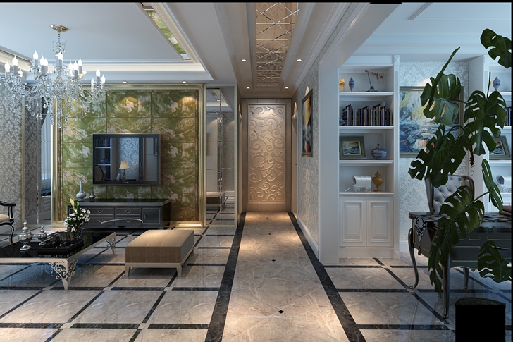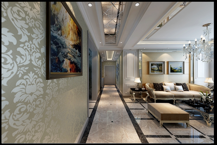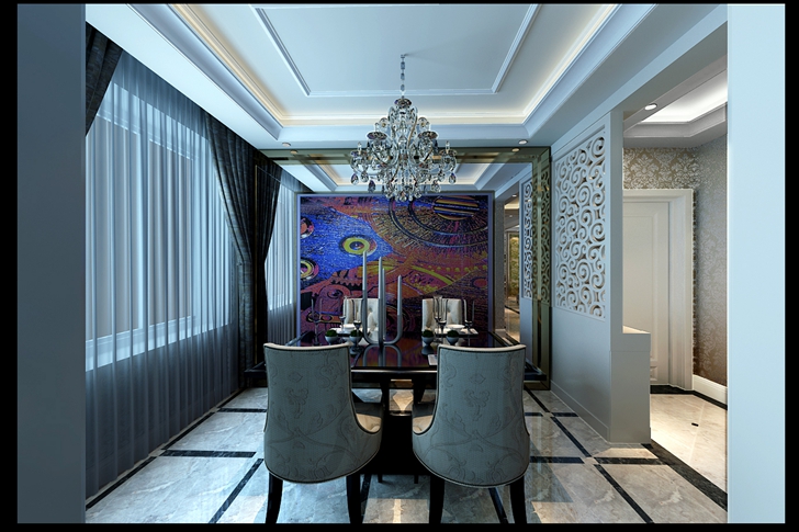 业主是从事IT的工程男,喜欢科技感比较强的设计,镜子与瓷砖的搭配,地面的拼花造型,颜色对比强烈,大胆的镜子的折射使用,整个居室环境非常有吸引力。在室内的形态塑造方面大量采用了穿插和加减的设计手法。并通过线型灯和纹理的地面运用。以及墙上的反光金属,从而来体现点、线、面、体的概念元素。同时使用黑白灰为主色调,配合温暖的欧式家具,活泼又雅致。