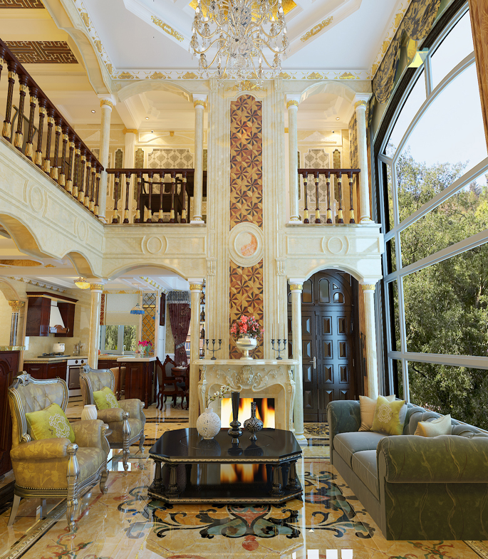 本案的设计风格为传统欧式风格,营造典雅、高贵气质是本案的主题。在生活繁杂交错的世界里,典雅、浪漫、舒适的生活空间能让人身心舒畅,感到宁静和安逸,缔造出一个令人心驰神往的空间。本案在空间布局上遵循以人为本的设计理念,结合业主意见,将负一层作为主要的娱乐空间,影音室、健身房、酒窖随处都可以看到设计师精心的安排与规划。一层空间主要为会客区,二层、三层主要为业主的私密空间。
