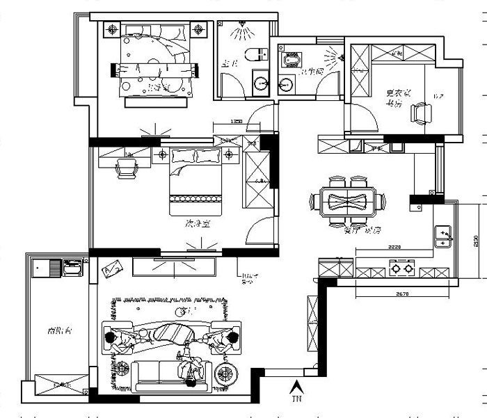 120㎡三居美式风格联泰香域中央