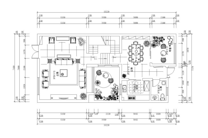 本户型最大的缺点就是客厅,第一对于这个档次的别墅来说,面积太小,主要原因是每个墙面的不完整沙发会客的地方太紧凑,传统的影视墙没法做。