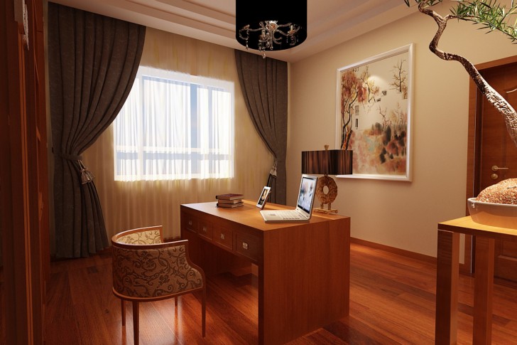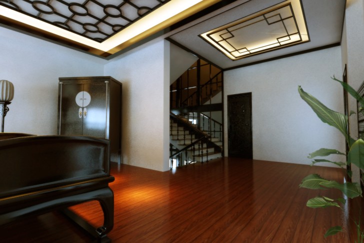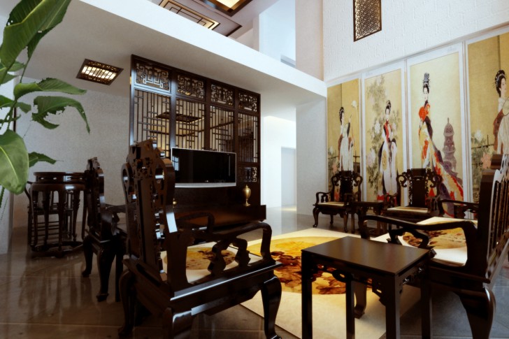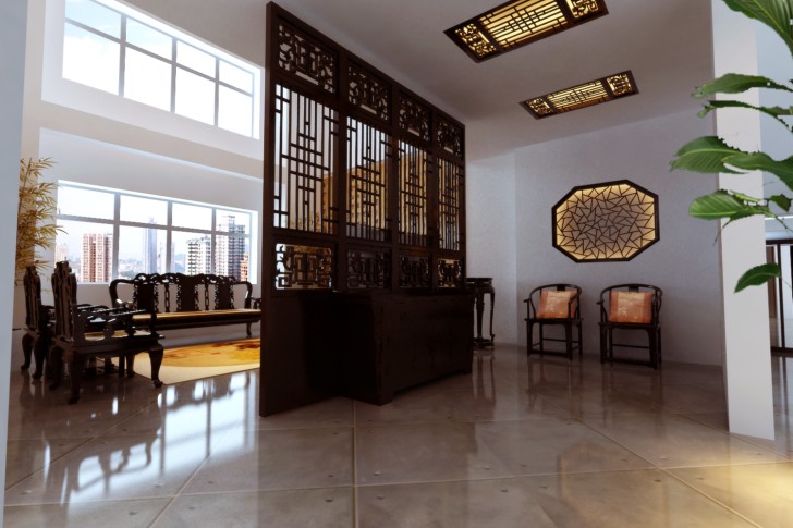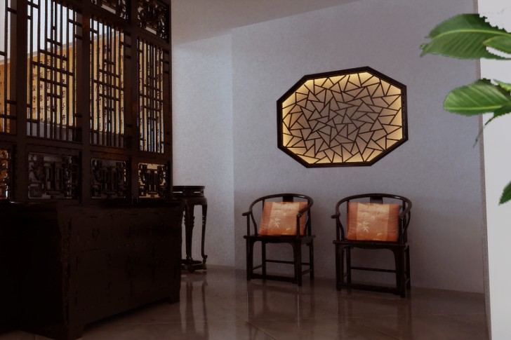 设计意图:追求的是一种修身养性的生活境界。总体布局多采用对称式的布局方式,格调高雅,沉重而内敛,书卷味道浓,凸显大气,高贵,文雅之氛围。而在装饰细节上崇尚自然情趣,花鸟、鱼虫等精雕细琢,富于变化。 居室内不易用较多色彩装饰,以免打破优雅的居家生活情调。色彩不宜明快,以沉稳的色调为主。绿色尽量以植物代替,如吊兰、大型盆栽等等。家具陈设同样讲究对称,极重文脉意蕴,擅用字画、卷轴、古玩、匾幅、瓷器、宫灯、屏风、博古架、山水盆景等加以点缀,渲染出满室书香,一堂雅气。 装饰手法上多采用借景、藏景等手法,以达到移步换景的效果。小居室,大洞天。