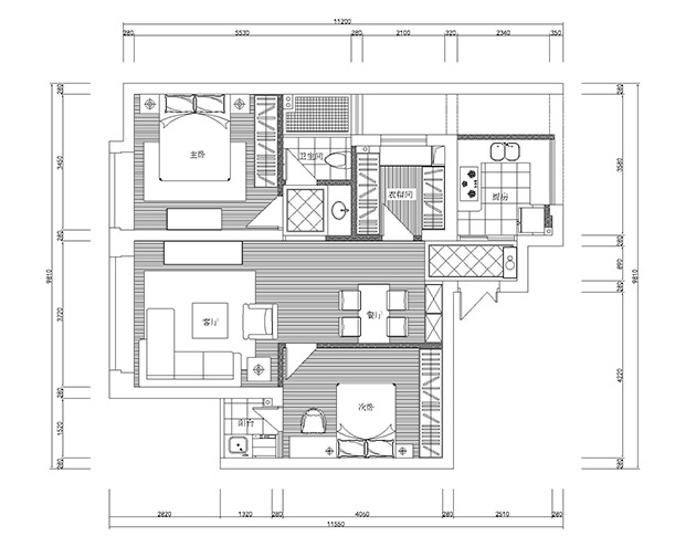 小区:印象外滩 面积:110㎡ 户型:三居 风格:混搭风格