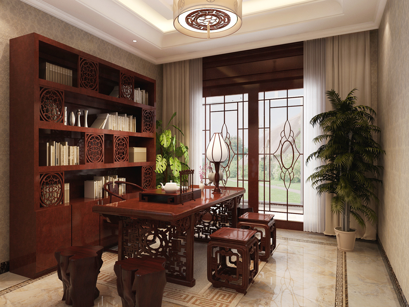 小区:水岸豪庭 面积:350㎡ 户型:别墅 风格:新中式风格