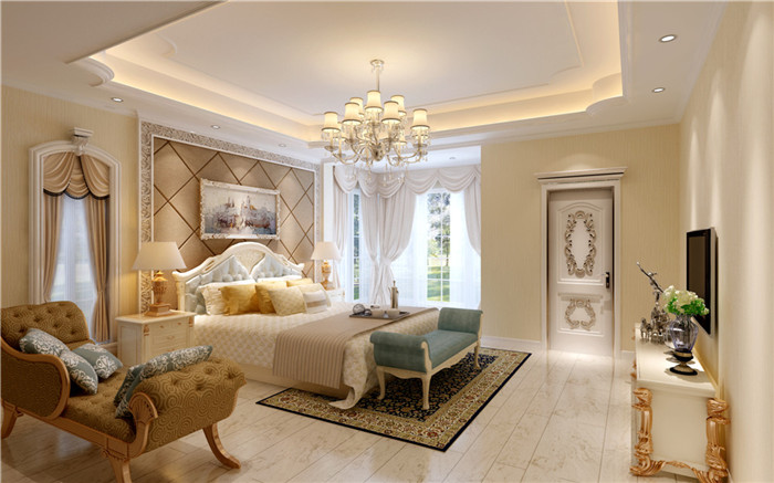 此设计方案的业主是一对中年夫妇,风格倾向定位为法式风格,居室中所出现的装饰手法都综合人居生活的习惯,汇集了浅色格调的装修理念。本案的设计重点是会客空间与门厅、餐厅以及过道空间互通与交流,从设计手法上采用了从墙面上的线与面的衔接呼应,以及顶面的空间的虚拟划分,达到各功能空间融会贯通的目的。客厅以浅色调为主,护墙板的运用让客厅看起来更有质感。入户门厅位置的造型与客厅整体造型相呼应。 主卧明亮的天花与浅色地板,再配上床头背景墙的线条与软包造型,使其融为一体营造出卧室温馨、舒适干净的氛围。 整体没有多余的装饰,平实中不露声色地透露出气派。在这里喝茶、聊天、和知心的朋友交流感情,清新洁净的气氛里,赶走往日的浮躁,一切都是那么平静,舒适,安逸,祥和,阳光仿佛照进了心里,空气里充满了和谐和希望。