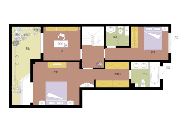 几乎所有的家居设计中,都未跳过书房这一环节。一方面,固然是因为读书是人类所共有的一种跨越了种族与边界、时间与空间的生活习惯或嗜好。另一方面,当家居设计的大部分环节都只在表现其本身的功能与形态时,书房的设置却总是极有分寸而又极其丰富地传达着家居主人的内心,从而提升了主人的身份与品位。本案中书房的设计简单大方采用推拉玻璃门增加了书房的采光,布置简单但不失主人的身份,深色家具彰显主人的品位。稳重大气。