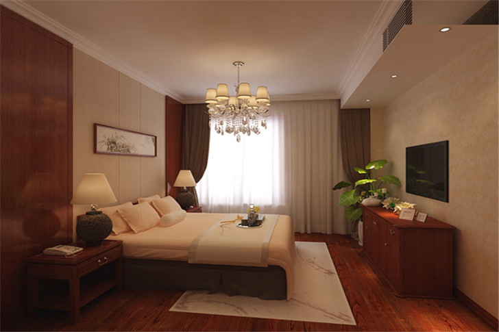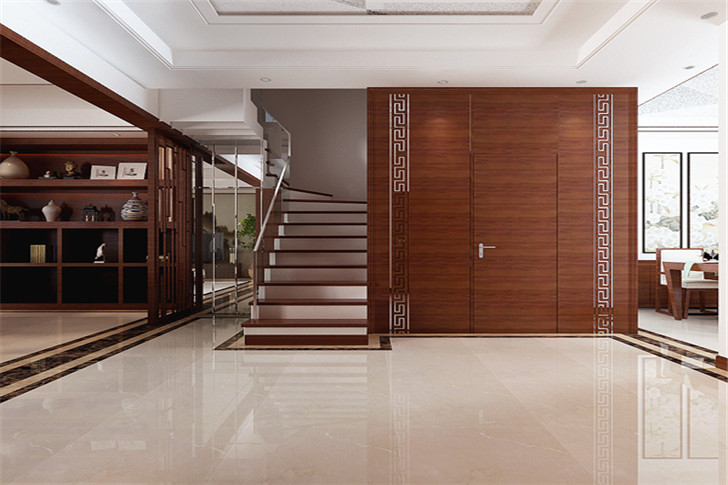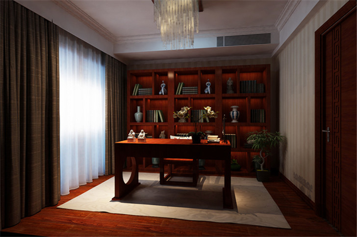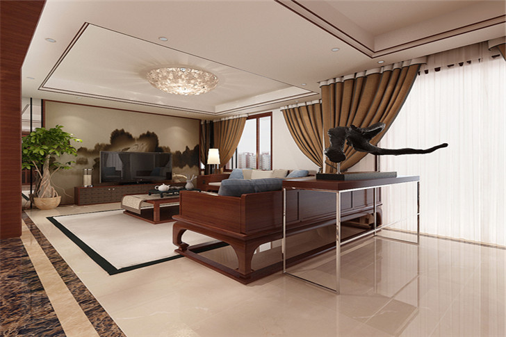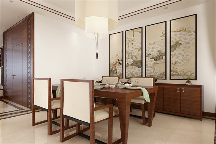 新中式风格讲究纲常,讲究对称,以阴阳平衡概念调和室内生态。选用天然的装饰材料,运用“金、木、水、火、土”五种元素的组合规律来营造禅宗式的理性和宁静环境。