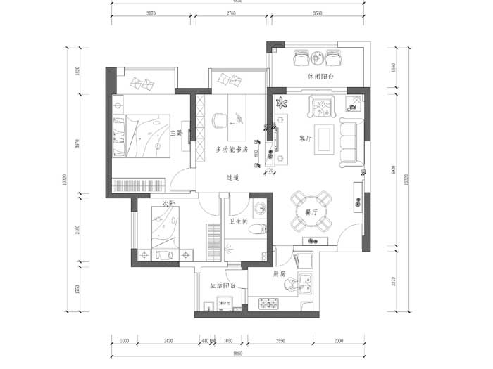 小区:保利中心 面积:89㎡ 户型:三居 风格:美式风格