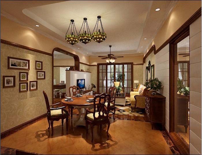 设计说明:本案业主为中年夫妇,喜欢美式田园的白色护墙板和红橡色家具,以及复古的色调。本案设计最大的难度是户型比较小,电视墙非常的短,空间比较压抑,同时造就出复古的休闲混搭感觉。电视墙矮墙的处理使得书房和客厅空间有衔接又有区分,增加了空间感,又带来了美式休闲的自由个性。用温馨的墙纸和泥土色气息的乳胶漆搭配,再以木作的挂镜线进行分隔,也增加了一个墙面的层次性和整体的自然气息。厨房和卫生间用不同的的仿古砖进行搭配,处理得和公共空间更为融合。为了保持休闲的自然感觉,也为了保持清洁打理的轻松性,本案在入户的餐厅位置使用了复古砖,而客厅部分则是实木复古地板拼接而成,并且不使用扣条。