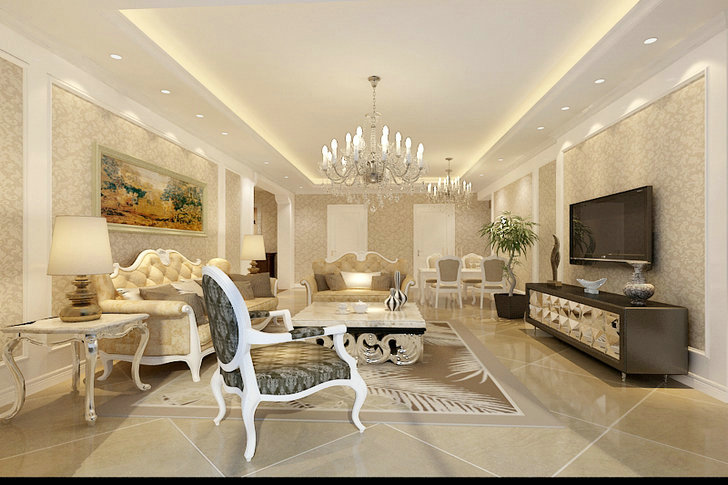 小区:水郡长安 面积:135㎡ 户型:三居 风格:新古典风格