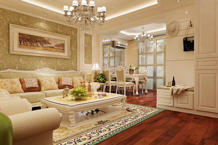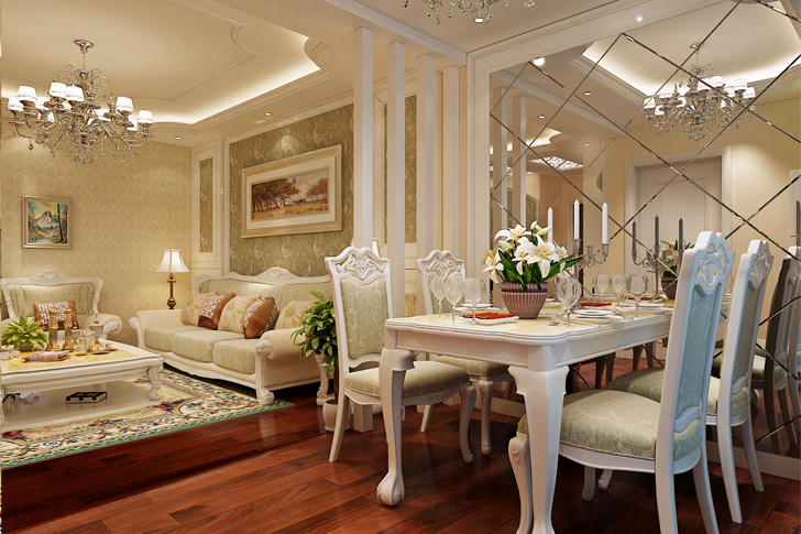 设计方案秉承欧式风格,通过客餐厅的连续造型,把空间和造型有机的结合在一起。客厅的壁纸、软装搭配的相互映衬,结合的整个空间有机统一.........