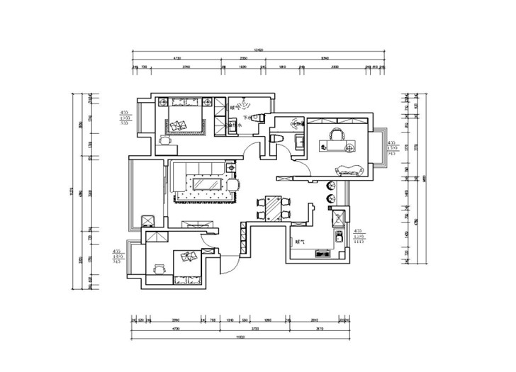 小区:鑫源山庄 面积:126㎡ 户型:三居 风格:现代简约风格