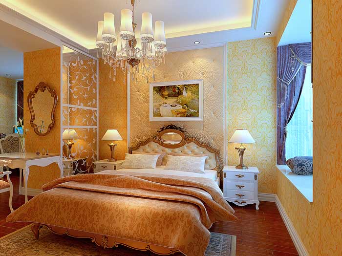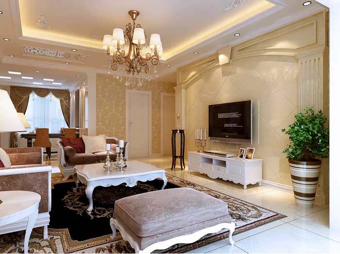设计说明:本套户型为三居室,一对想要搬进幸福新房的新人,找到细致认真温馨的简欧感觉,客厅使用大理石背景,卧室的软包墙纸,找到公共空间大气奢华和生活空间的唯美舒适,没有传统婚房的大红喜庆,反倒是添加了富贵稳重,寓意二人美满的幸福生活。