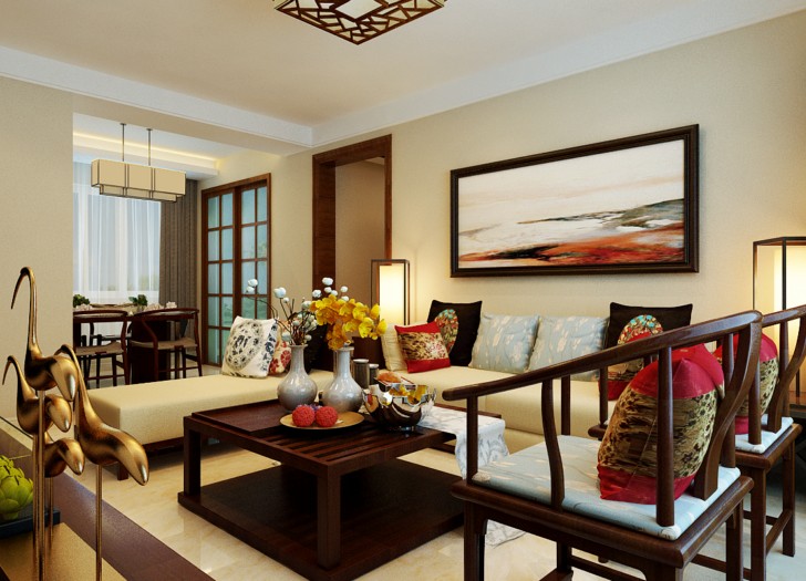 小区:鲁能领秀城 面积:109㎡ 户型:三居 风格:新中式风格