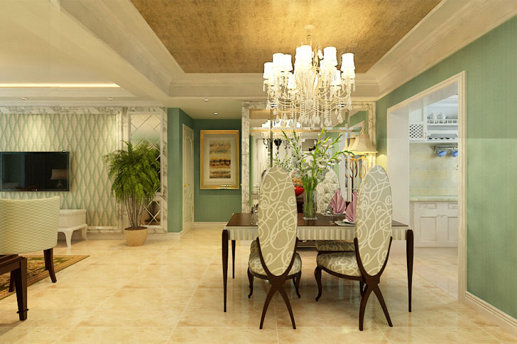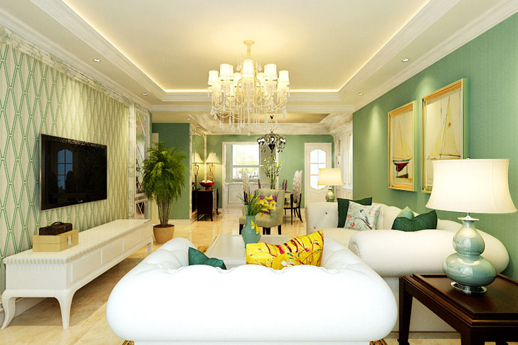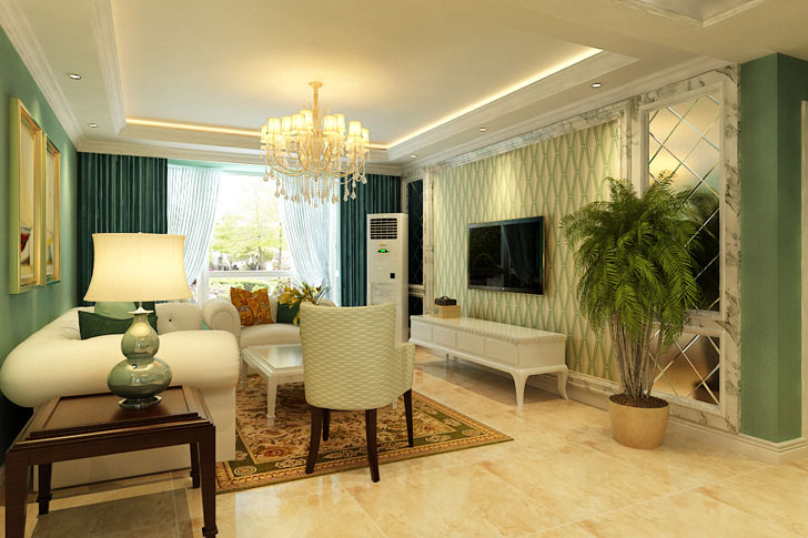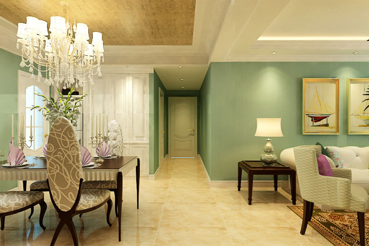 本案以清雅卫基调,在居室的空间的处理上,力求表现自然轻松的情趣,设计上讲求色彩关系,注重大小色块间的组合,地域性的后期配饰融合设计风格之中。在室内、窗帘、桌巾、沙发、灯等均以浅色调卫主。素雅的壁纸也是常用的元素,采用低彩度、线条简单的家具与彩色玻璃吊灯相得益彰。鲜花和绿色的植物也是很好的点缀。