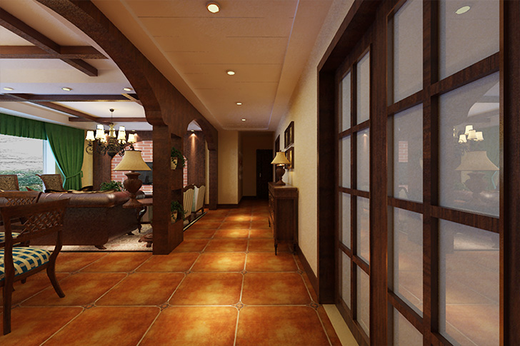 设计介绍:新婚夫妻,准备过两年单身生活。男业主是个比较喜欢旅游,女业主喜欢养花。所以在餐厅背景做了一面特别大的照片墙,男业主拍的风景照可以进行展示。在拱门中间做了两个空心的格子,平时可以把花草摆在上面,一进家门就赏心悦目。平时的花花草草可以养在阳台上。进主卧走廊的左侧做了一面装饰,可以挂些男业主旅游时买的艺术品。 干湿分离区也用相对应的美式洗手台和仿古墙砖。在干湿分离区的镜子左右装上壁灯,显的小有情调。