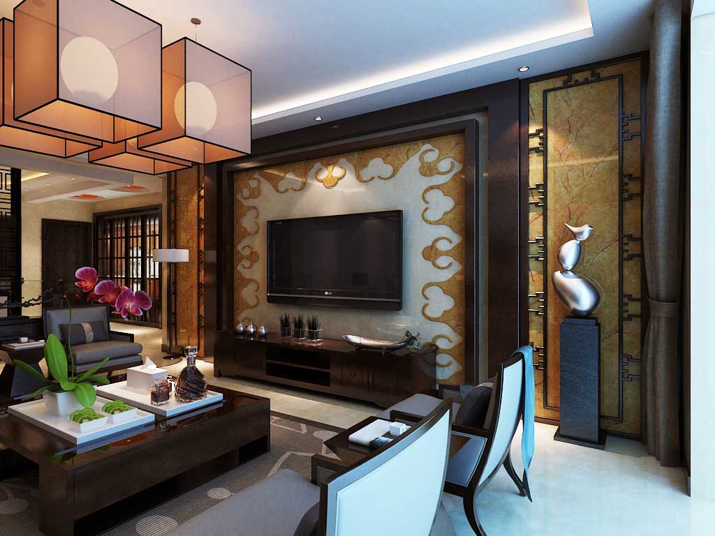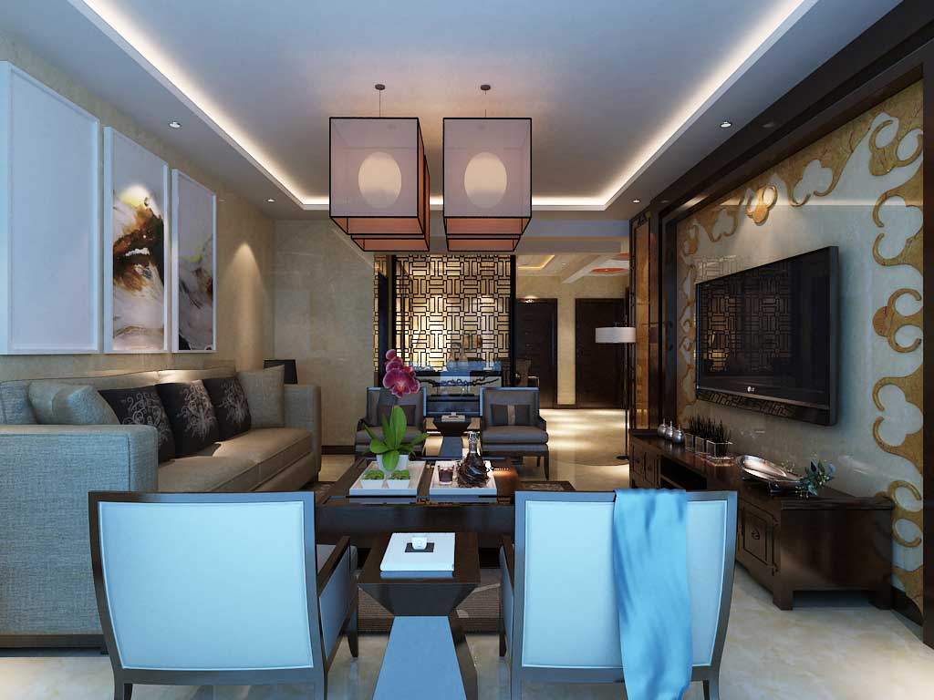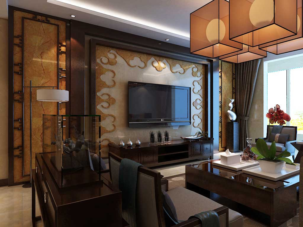 小区:御龙瀚府 面积:130㎡ 户型:三居 风格:新中式风格
