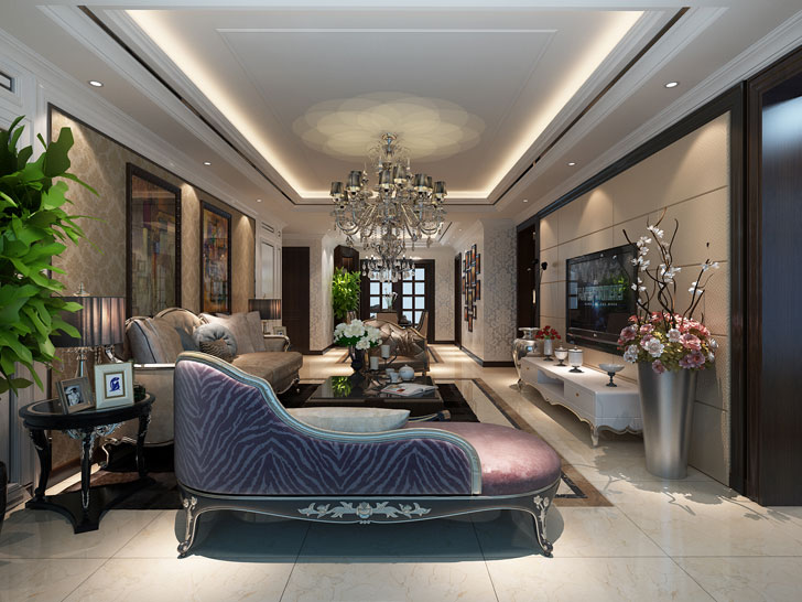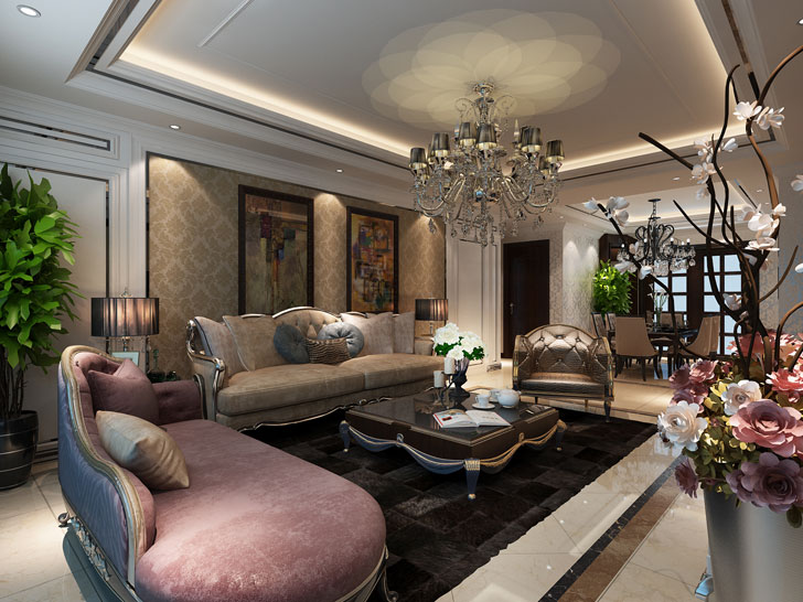 欧式风格的特征是强调线形流动的变化,将空间内雕刻工艺集中在装饰和陈设艺术上,色彩华丽且用暖色调加以协调,继承了传统古典欧式风格的装饰特点,吸取了其风格的“形神”特征,这设计上追求空间的连续性和形体变化的层次感.