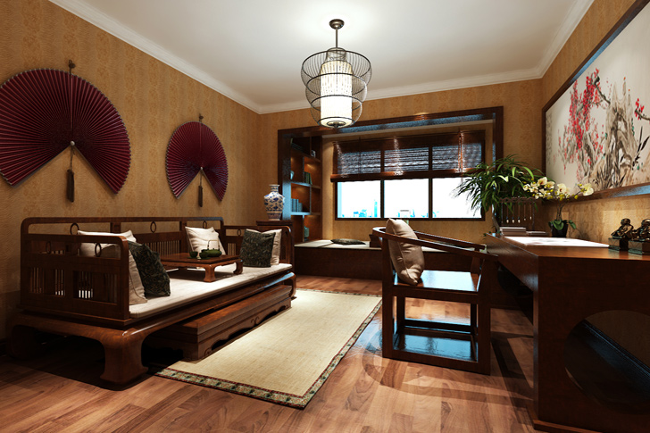 本案融合了庄重与优雅双重气质。总体布局对称均衡,端正稳健,而在装饰细节上崇尚自然情趣,花鸟、鱼虫等精雕细琢,富于变化,充分体现出中国传统美学精神。中式风格的客厅具有内蕴的风格,为了舒服,中式的环境中也常常用到沙发,但颜色仍然体现着中式的古朴,中式这样表现使整体空间,传统中透着现代,现代中揉着古典。这样就以一种东方人的‘留白’美学观念控制的节奏,显出大家风范,其墙壁上的字画无论数量还是内容都不在多,而在于它所营造的意境。