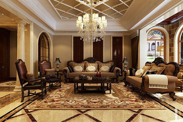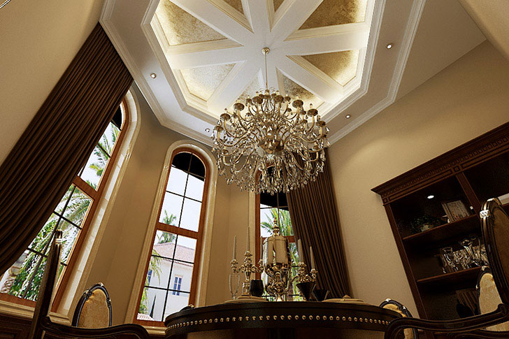 美式新古典又可以理解为英伦风格,它传递给人的是一种典雅庄重,兼具绅士风度的住宅空间,大量米黄色大理石的运用,奠定了整部作品富丽堂皇的基调。玄关的壁炉,柱式,背景立面的石材,地面的拼花在您步入这所房子的时候第一时间让您感知一种庄重大气典雅。二楼是主人的私密空间,宽敞的卧室增加了起居室的功能。负一层设了茶室,书房,棋室等空间,在一个阳光明媚的午后,约俩三好友品品茶,下下棋,尽情挥散午后时光