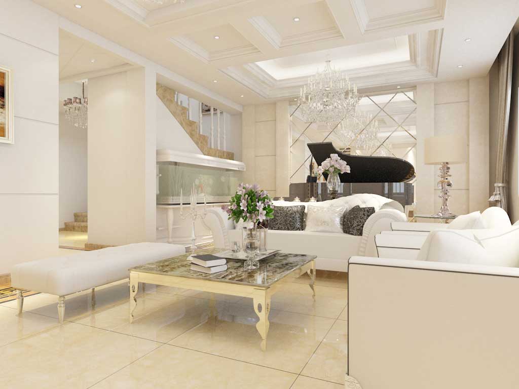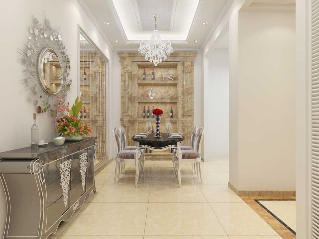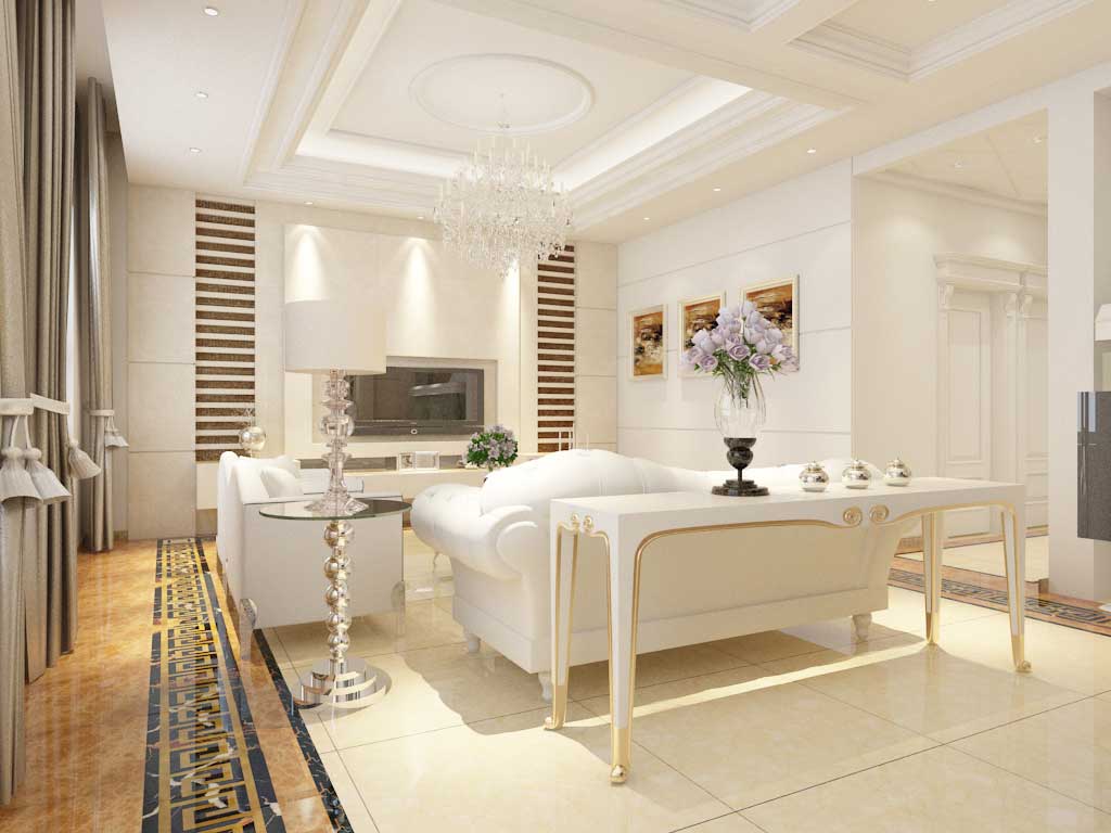 高雅而和谐是新古典风格的代名词。白色、金色、黄色、暗红是欧式风格中常见的主色调,少量白色糅合,使色彩看起来明亮、大方,整个空间给人以开放、大气的非凡气度,让人丝毫不显局促。