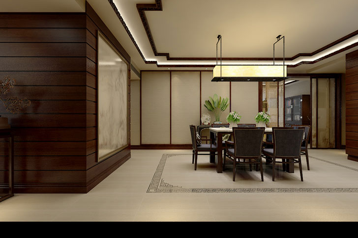 本案设计的风格是以现代欧式风为主,从晶莹剔透的米黄大理石、地毯到天花 板上的欧式线条及水晶吊灯,让整个空间弥漫着奢华与浪漫的气氛。使整个大厅设 计得更为通透、明亮。别具风格的新古典家具的摆设及精致惟妙的餐具、烛台的撞 碰,使空间不再单调,使生活更富有情趣