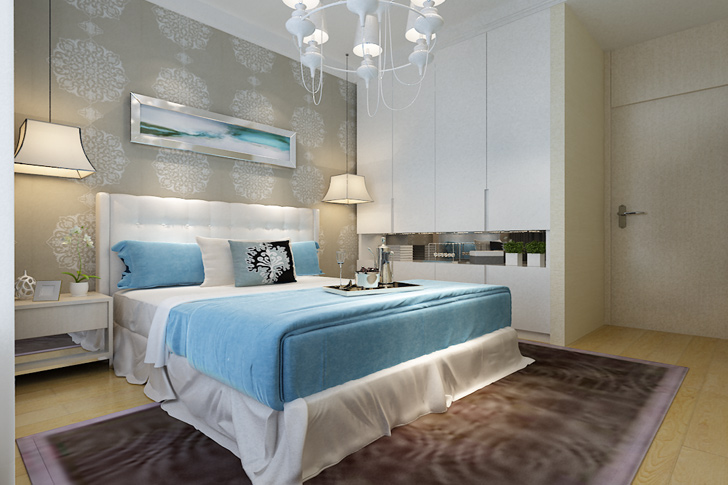 线条简单地家具,简洁美观的床头背景墙,空间简约,但色彩搭配弥补了视觉上的单调。整个房间不仅是对简约风格的遵循也是个性的展示。