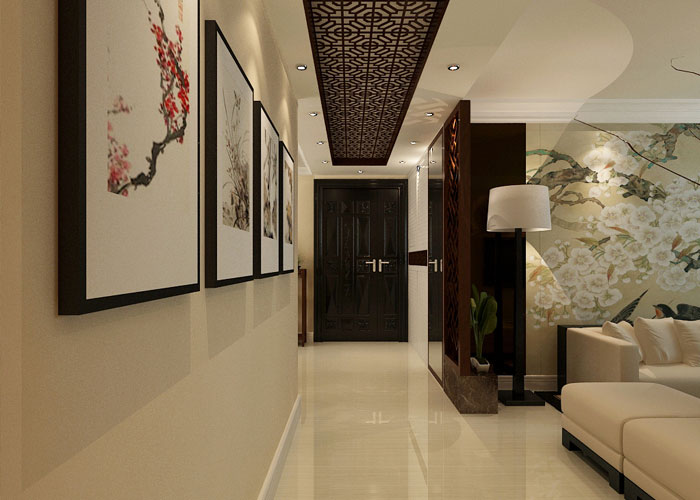 新中式风格的家具多以深色为主,墙面色彩搭配:是以苏州园林和京城民宅的黑、白、灰色为基调。