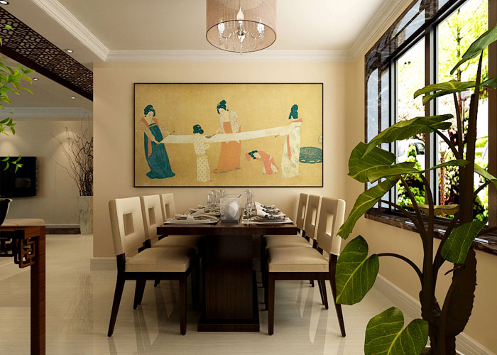 墙上的画直接的表达出古代女性的朴素、典雅、幽静的气氛,有助于家庭和睦。