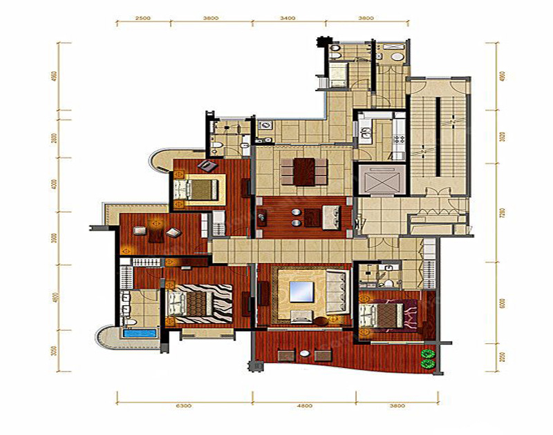 小区:雅居乐藏龙御景 面积:250㎡ 户型:五居 风格:新古典风格