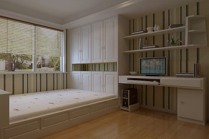 本方案利用灯光和材质的变换合理的划分了空间,清新自然的壁纸与乳胶漆让家的温暖以及温馨感得到极致的散发,浅色的墙面让青春活力充分的释放。