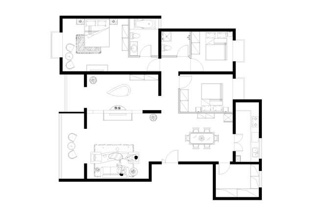 小区:金汉绿港 面积:135㎡ 户型:四居 风格:新古典风格