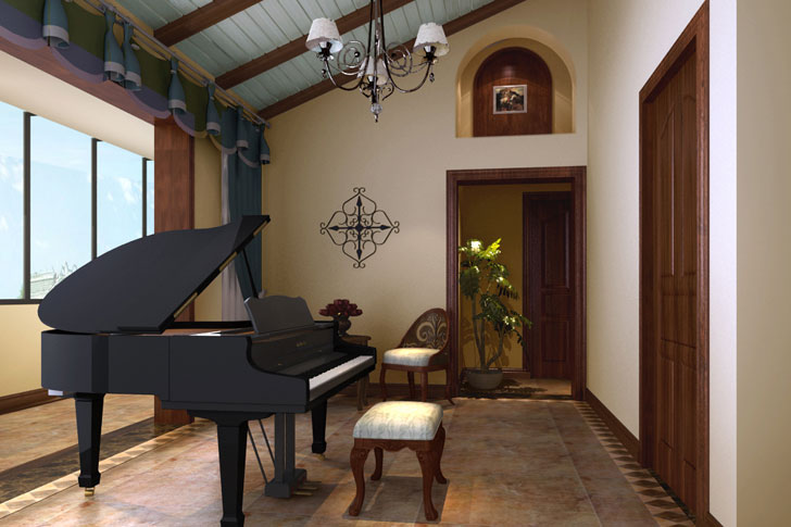 色彩的恬静 优雅。餐厅的宽敞提高个生活品味。在闲暇之余,喝一杯咖啡,望一望天空的白云,嗅一嗅花的馨香,一切那样惬意安详。还可以弹一曲钢琴曲,我想这样的午后是任何人都无法抗拒的。