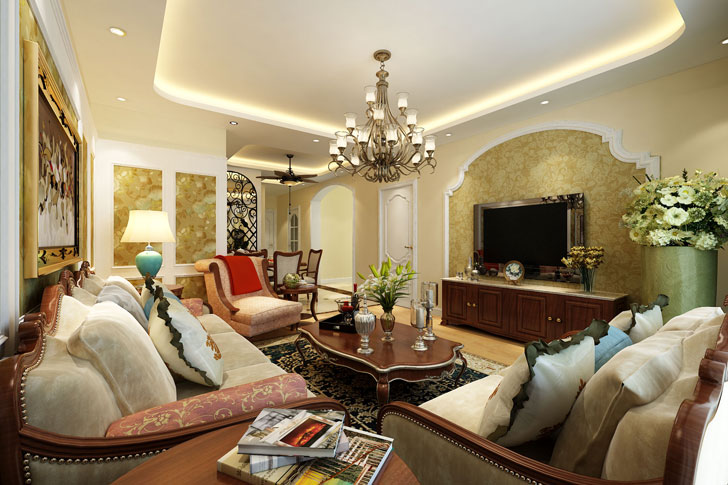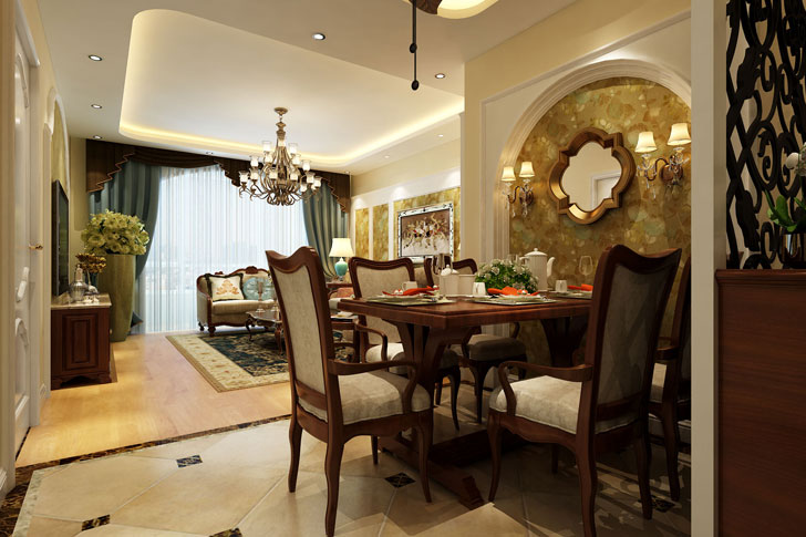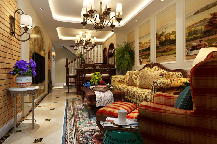运用粗大的木梁,古朴浪漫的铁艺造型,宽松厚重的皮质沙发,皮箱造型的茶几等配饰,在乡村风格的家居空间内,生活成为最大的主题。一切以舒适至上,这种精神被继承到美式乡村风格身上。在视觉元素上,美式乡村风格摈弃华丽金银和典雅黑白,创造出一种古朴感。