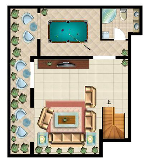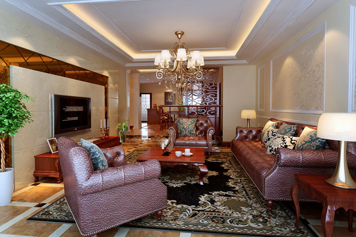 此户型空间高,布局合理。设计风格为美式风格,贵气加大气而又不失自在与随意的风格。美式风格家居自由随意、简洁怀旧、实用舒适;暗棕、土黄为主的自然色彩;欧洲皇室家具平民化、古典家具简单化;家具宽大、实用舒适;追求粗犷大气、天然随意。