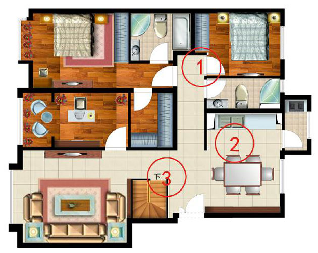 户型缺陷:次卧门口过宽,没有门垛,嵌入式衣柜墙过短。厨房封闭,不通透,使餐厅过暗,不明亮。楼梯墙过短,使房间整体不协调。