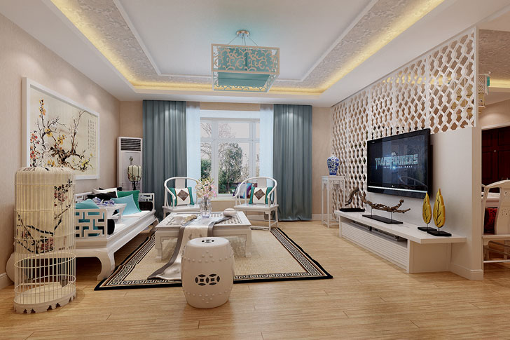 110㎡三居新中式风格泰林·黄河馨苑
