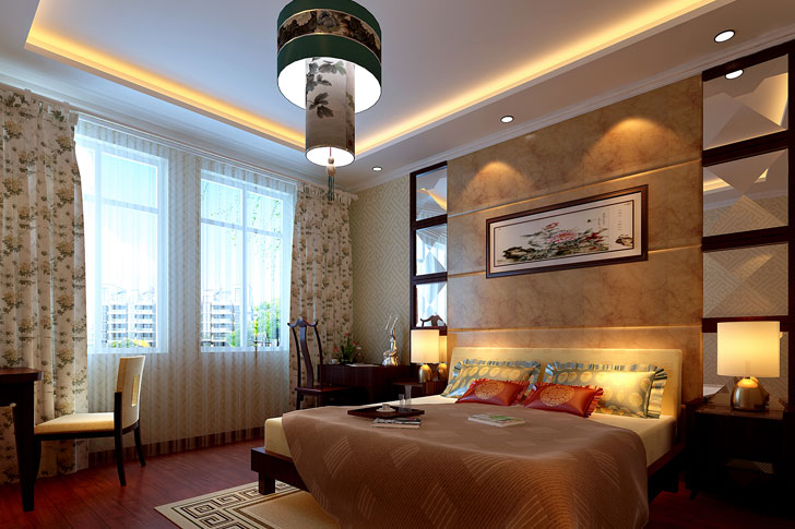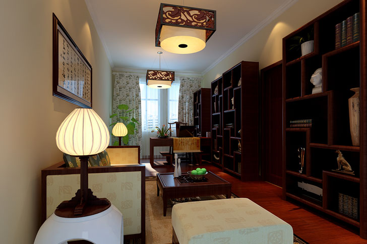 即使采用了“新中式”来做住宅的整体风格,主人们也会在空间中摆放大量的装饰品。这些装饰品包括数量繁多的绿色植物、布艺、装饰画以及不同样式的灯具等。这些装饰品可以来自世界各地,但空间的主体装饰物还是中国画、宫灯和紫砂陶等中国传统装饰物。这些中式装饰物的数量不在多,但在空间中起到了画龙点睛的作用。